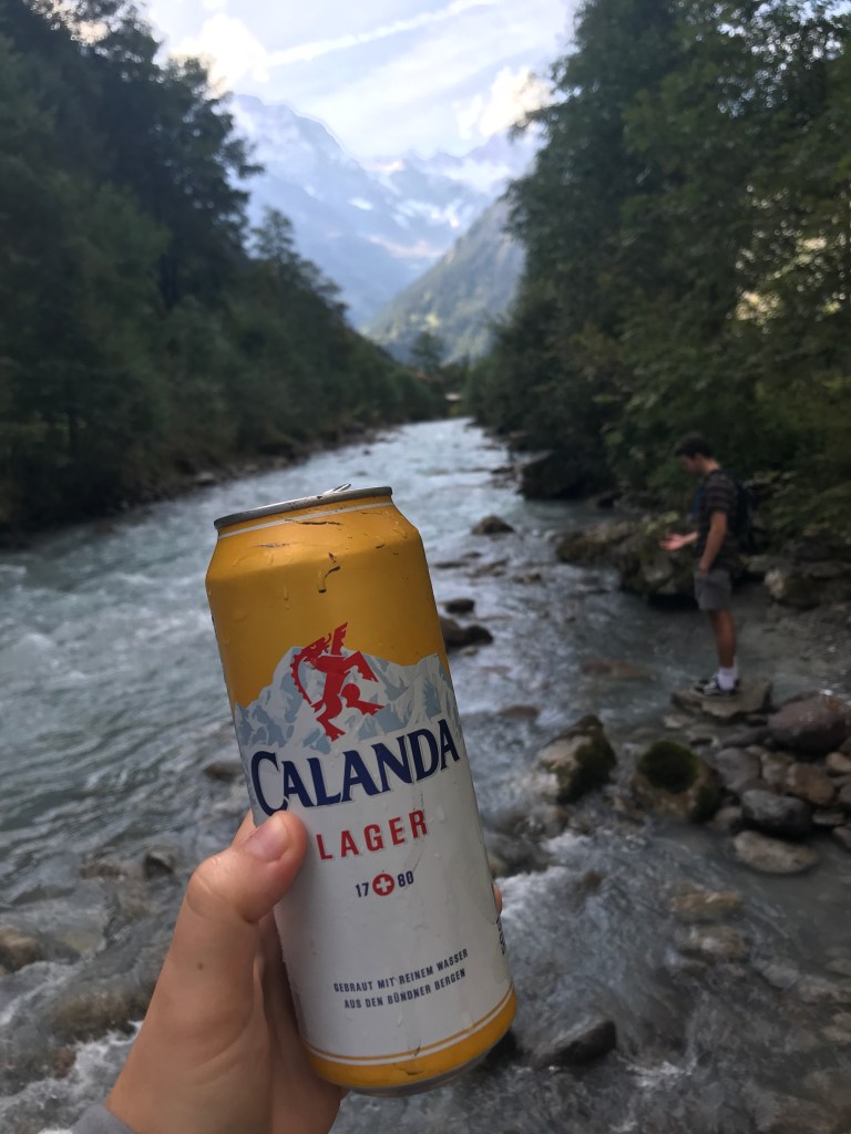 On this bike ride, we noticed how incredibly blue the water is in Switzerland. It is too difficult to explain to you what it looked like, so I’ll just attach a photo below, but it looks otherworldly. The water gets this color and milky look because of the glacial runoff coming from the Swiss Alps, which is something I had never seen before. We made it to Lake Thun and of course had to go for a swim! The water was really cold, but so refreshing after the bike ride. We finally went to a traditional Swiss restaurant and got a three course meal with a discount code from our lovely hostel! We had tomato cream soup, a vegetable raclette dish and a Toblerone mousse. After a filling dinner, we turned in for an early wake up the next morning.