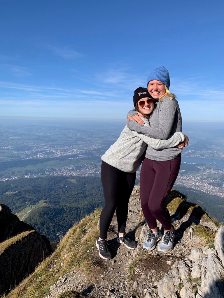 Mt. Pilatus was absolutely incredible and my favorite thing that we did this past weekend. We took a gondola up to the first stop called Fräkmüntegg. At this stop, we saw cows with real cowbells and a lot of goats too. We spent a few hours wandering around and ended with a toboggan ride down the hills. I couldn’t get a picture of the track because it was a 100CHF charge of they saw you with your phone! We got back onto a cable car and made the anxiety-inducing climb to the top, which reaches 6,995 feet at Tomlishorn. The views from Mt. Pilatus were breath-taking. We adventured all around the peaks climbing up steep stairs, walking through carved out caves in the side of the mountain, and even seeing mountain goats! There were paragliders taking off from from Pilatus and floating through the valley. Mt. Pilatus was so incredible and I think it was because my adrenaline was pumping the entire time purely because of how high up we were. This feeling of uneasiness didn’t subside until we got back down to Fräkmüntegg, but I think that it made that experience so unforgettable because of the trepidation that I felt.