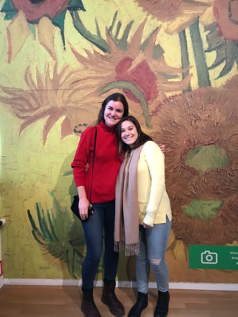 The next morning, we woke up early and got a really good bagel breakfast (which I haven’t had since being in Santa Barbara!) before going to the famous Van Gogh Museum. All I knew about Van Gogh was his few famous paintings that we learned about in elementary school and his lack of one ear. After the museum, I saw so much more of his art and recognized a lot of other pieces that I didn’t know I had seen before. I got to see the “Sunflowers,” the “Bedroom” and the “Irises.” It was a smaller art museum compared to one’s that I have seen before, but I think it was perfect and you could really see everything in about 1 1/2 hours. After spending some time at Van Gogh, we decided to walk around the famous Vondelpark of Amsterdam. The park is so big that we got to explore for hours on end. Amsterdam was fully in fall season, so we saw all of the trees changing colors and everything had this intense red-orange-yellow, autumn glow. There were bikes zooming around the park, small lakes, ponds, playgrounds and small Dutch houses in the park. It was the perfect way to spend the afternoon until it got really cold as the sun went down. We decided to leave the park and walk into town to take refuge in a small café for an hour or so until we warmed up.