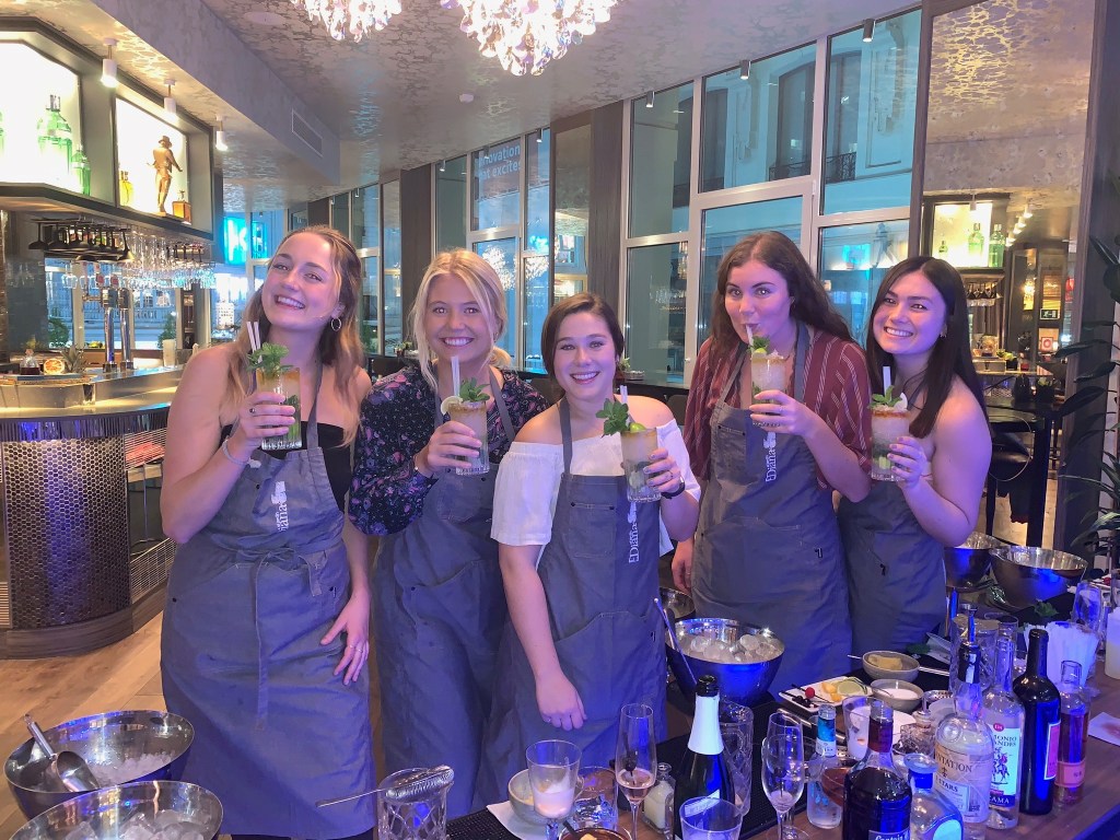 We did all of the touristy stuff that I’ve done so many times, but I love doing it. The most fun part was the ~free~ cocktail-making class that we all did. Hailey got it as a gift from her summer internship, so we went to the Hyatt Centric and had a two hour class. We made 1) a Cava wine drink, 2) Manhattan, 3) Pisco sour, 4) mojito and a 5) margarita. Rankings for me (best to worst): 4, 5, 3, 1, 2